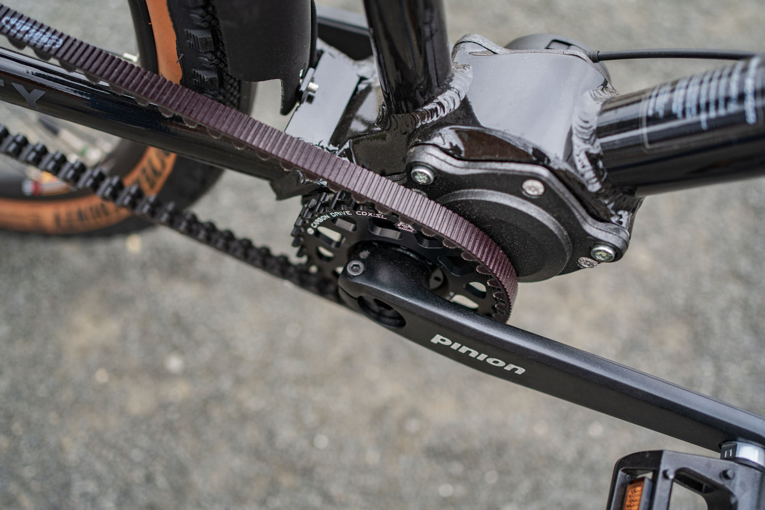 The Pinion gearbox delivers a 600% gear range, comparable to a traditional multi-chainring drivetrain, while keeping all moving parts sealed away from dirt and grime. Its low, central placement in the frame also improves balance and stability. The belt drive replaces a traditional chain with a rust-free, grease-free system that requires virtually no ongoing maintenance.